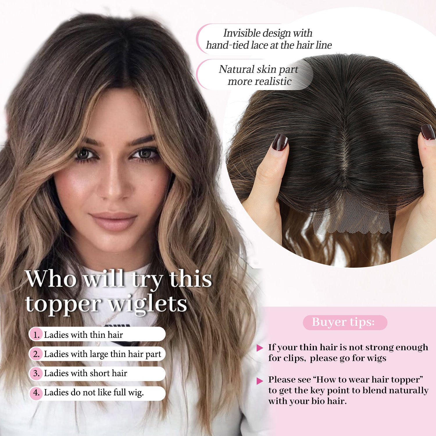 Wiglets hair toppers are the perfect option for women with thinning hair. You can wear it for any occasion, Concerts, Wedding, Theme parties, Shopping, Daily use, etc. Get beauty and confidence easily and no one will find your secret.