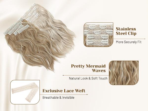 • 3. Premium Quality Material : Our clip in hair extensions made from high - grade soft synthetic fiber , these 14inch wavy clip in hair extensions offer a natural look and feel . Seamlessly blend with your hair . Durable and tangle - free , they ensure long - lasting use.