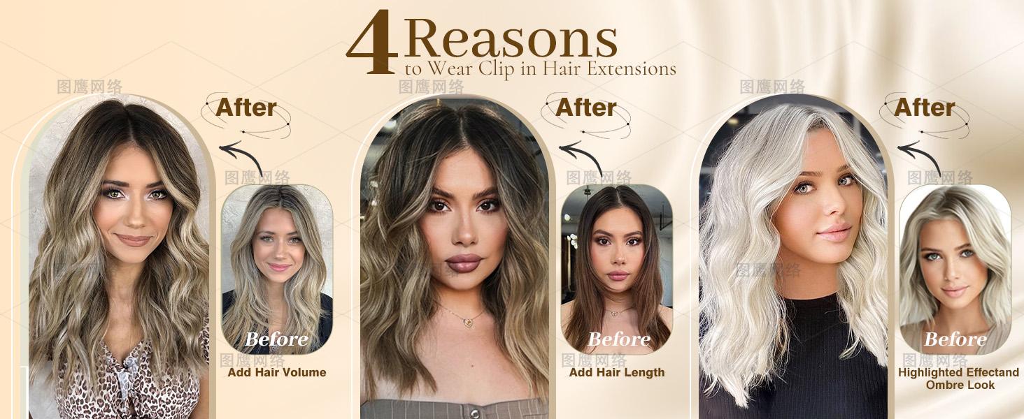 • 1. Revolutionize Your Hairstyle : These 14- inch wavy clip in hair extensions solve thin or short hair woes instantly . Add length , volume , and a trendy wavy texture effortlessly,achieve new fashion look in seconds . Elevate your style quotient and turn heads wherever you go.