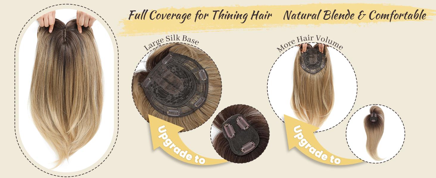 • 💕Premium Synthetic Hair Topper for Thinning Hair: Made with premium fibers that mimic real human hair, providing natural movement and shine for undetectable coverage.